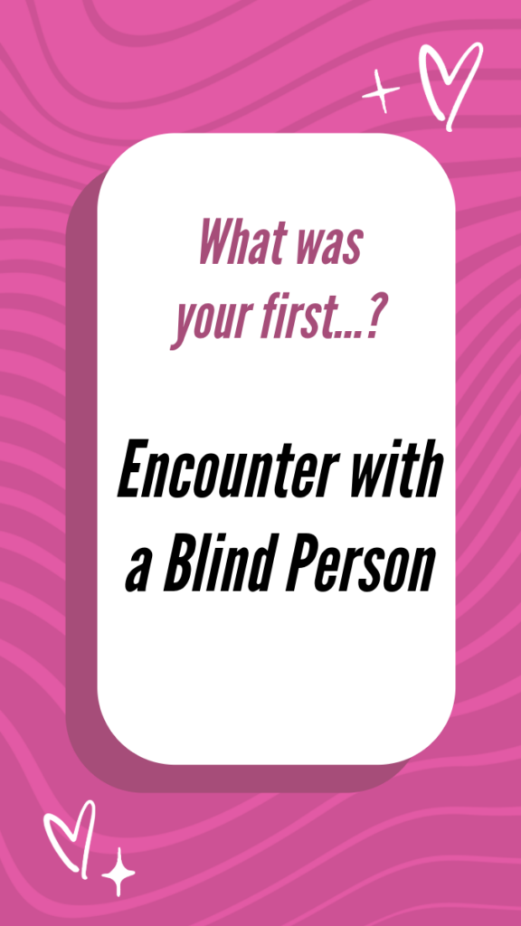 So, what was your first encounter with a blind person? If it was in a book, if you’re blind yourself, or if it was in an alternate reality, what did you enjoy about the experience? What drove you nuts?